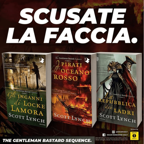 Oggi è il primo giorno del Review Party da me organizzato in collaborazione con Mondadori per quanto riguarda un’uscita molto attesa. Sto parlando de “Gli inganni di Locke Lamora” di Scott Lynch che viene nuovamente tradotto per Mondadori, nella collana Oscar Vault e che uscirà, insieme al secondo e terzo volume della saga, proprio il 1 Dicembre!