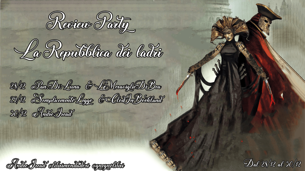 Oggi è l’ultimo giorno del Review Party da me organizzato in collaborazione con Mondadori per quanto riguarda l’uscita del terzo volume della saga di Locke Lamora scritta da Scott Lynch. Sto parlando de “La repubblica dei ladri” che viene nuovamente tradotto per Mondadori, nella collana Oscar Vault e che è uscito, insieme al primo e al secondi volume della saga, il 1 Dicembre.